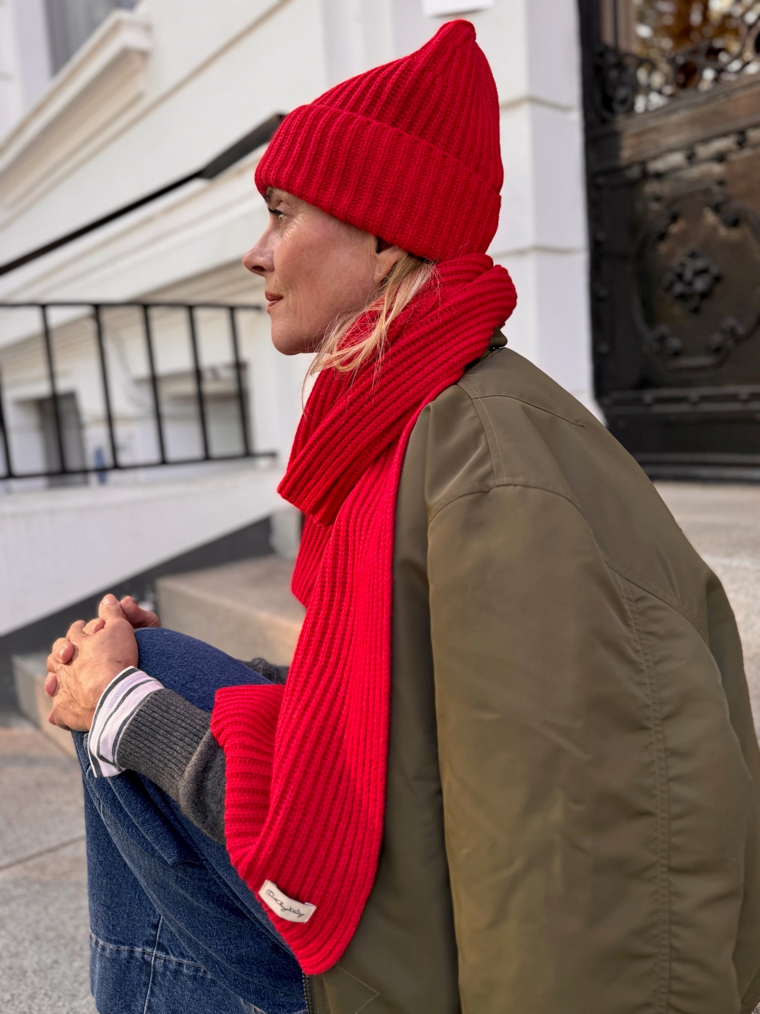 patent gestrickter Schal aus Cashmix, Gucci Red