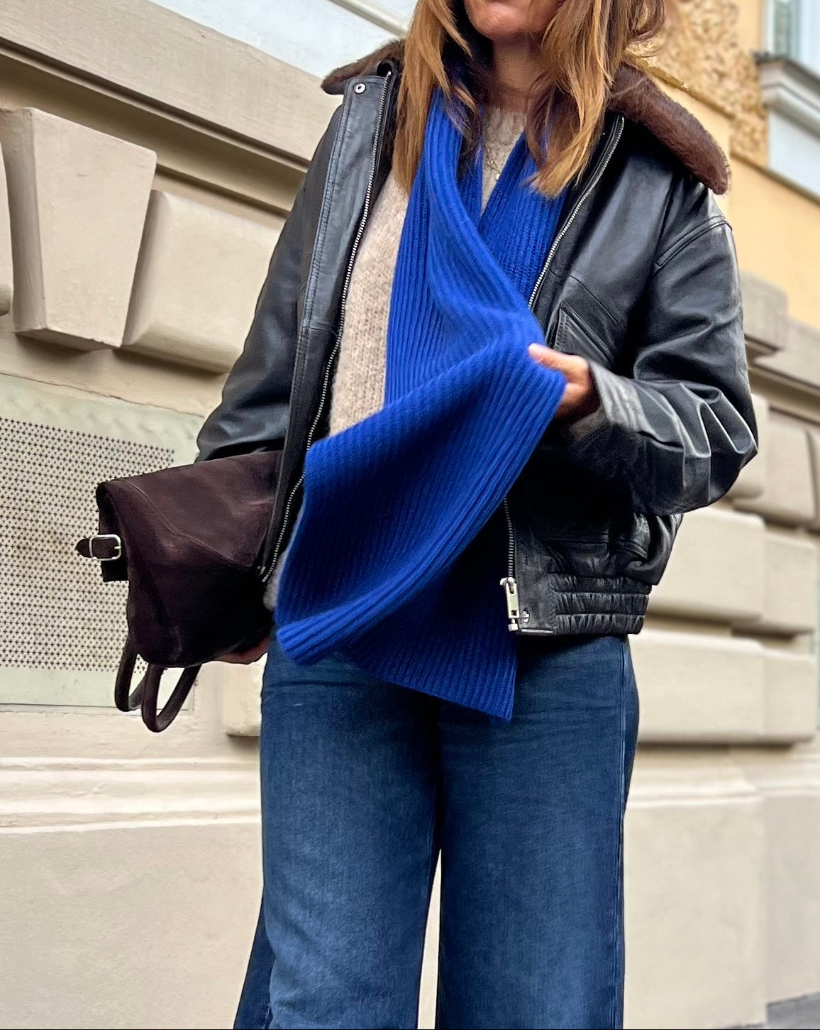 patent gestrickter Schal aus Cashmix, Royalblue