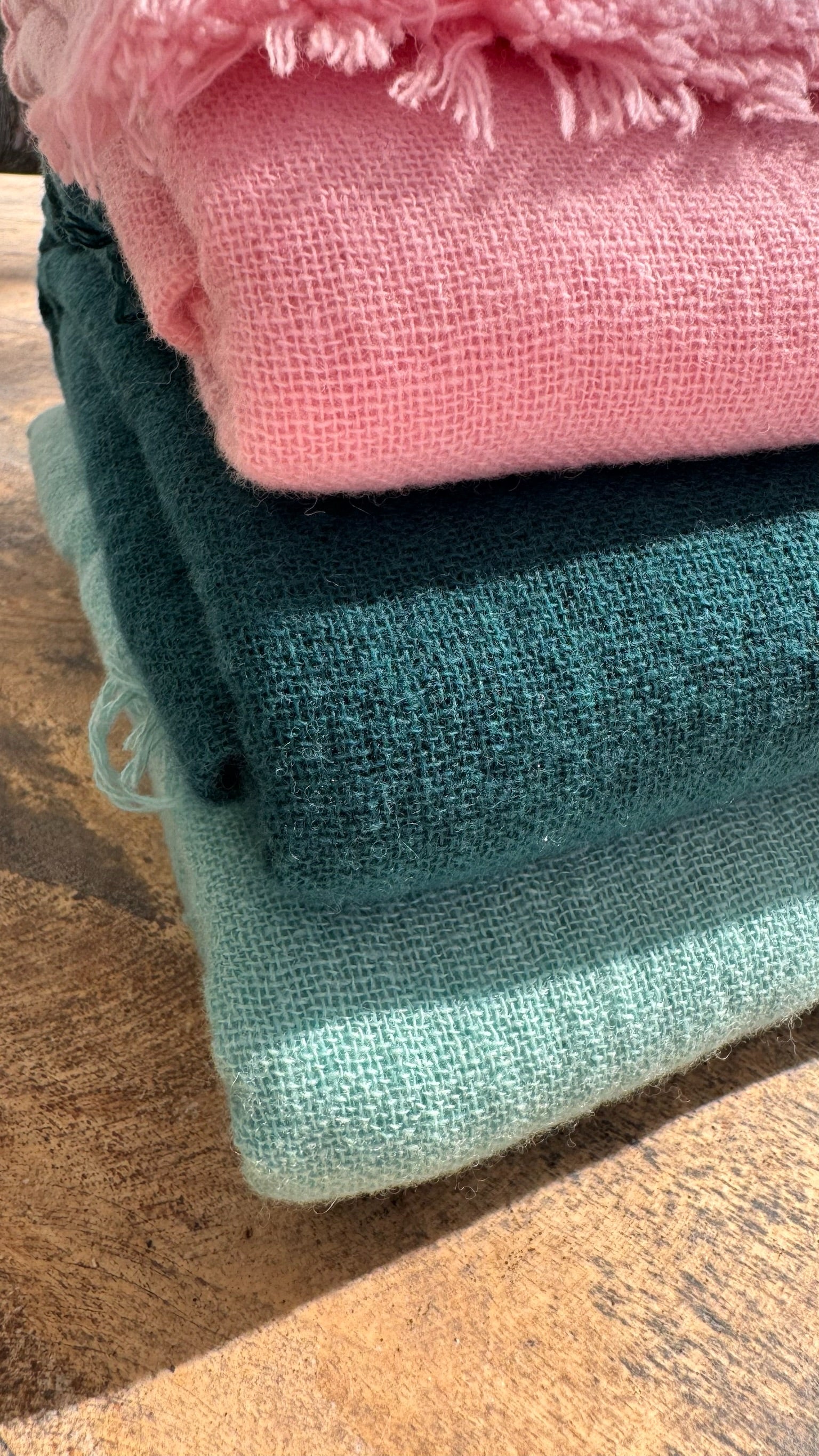 Dieses unfassbar leichte Plaid aus einer Cashmere-Merino Mischung, wird von einer kleinen familiengeführten Manufaktur in Norditalien gewebt.