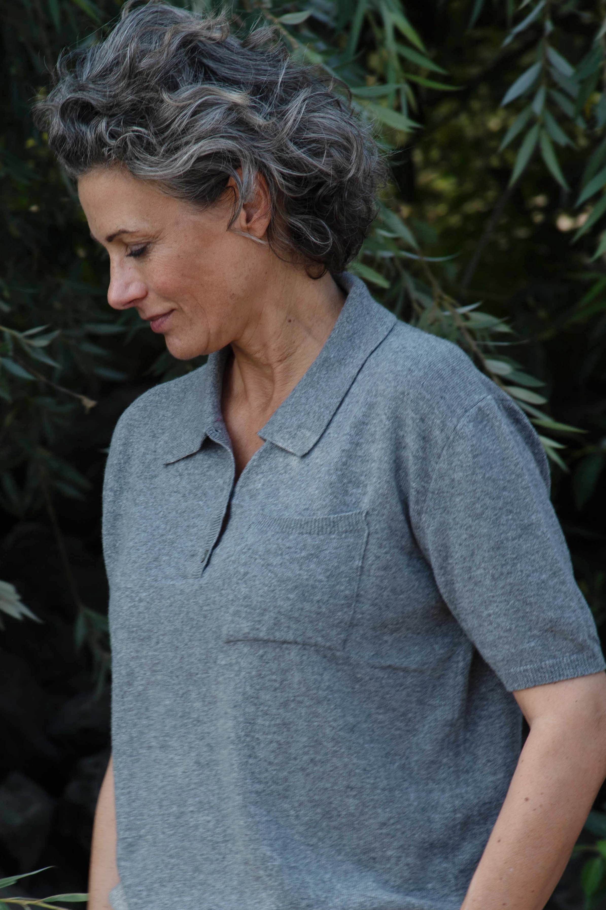 classy Strick-Poloshirt aus Cashmix, Flanel Grey